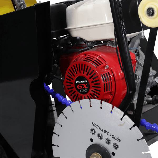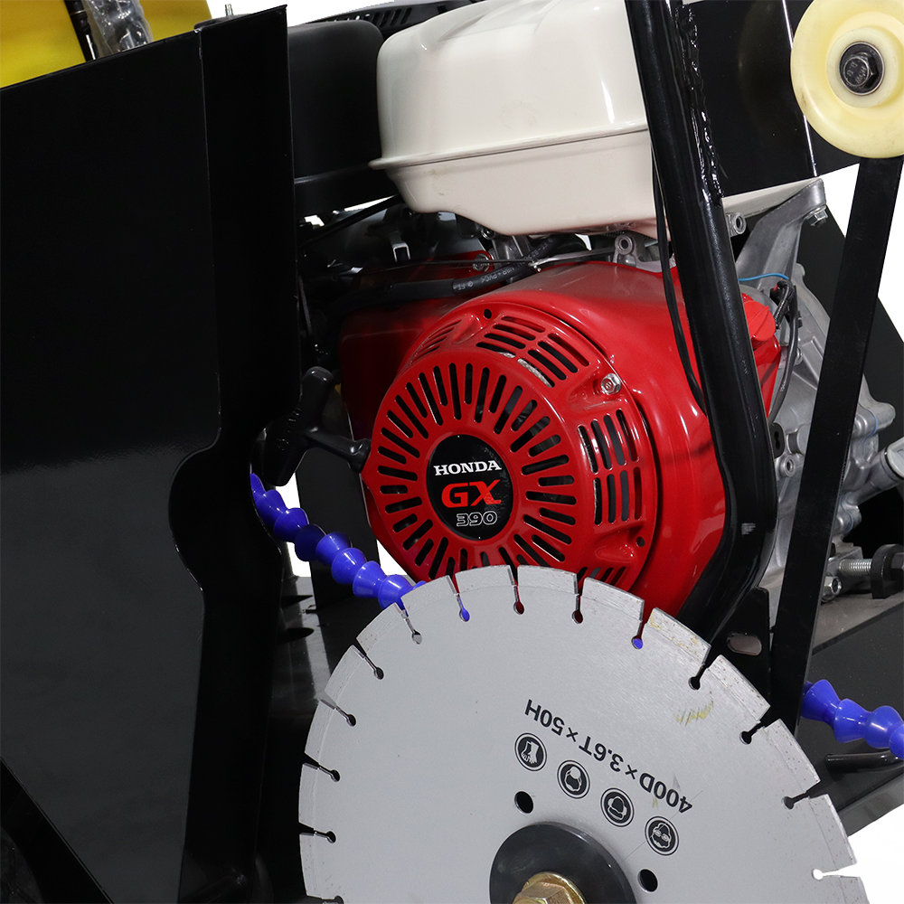 Cortadora de concreto con motor Honda de 13 HP. Para cortes precisos en pisos y losas. Incluye tanque de agua y guía de corte.
