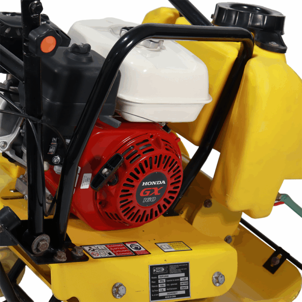 Placa compactadora REX con motor Honda GX160 de 5.5 HP. Perfecta para compactación de suelos en obras ligeras. Robusta, confiable y fácil de operar
