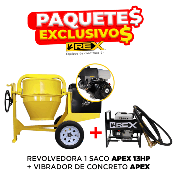 REVOLVEDORA DE 1 SACO APEX 13 HP + VIBRADOR DE CONCRETO APEX