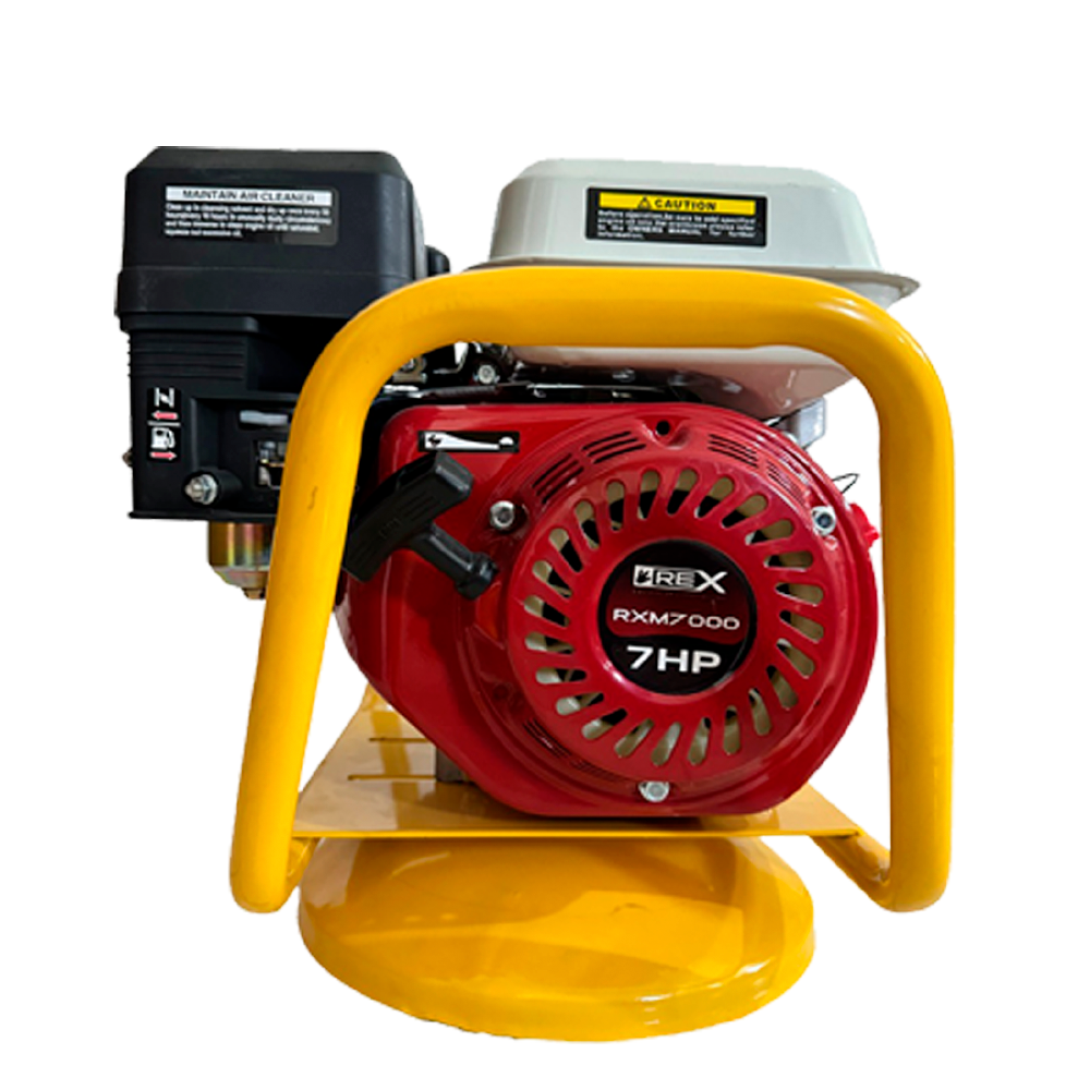 Vibrador profesional de concreto REX con motor de gasolina 7 HP (4 tiempos). Incluye chicote de 6 metros x 38 mm. Ideal para colados, lozas y castillos.